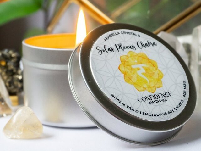 Solar Plexus Chakra Candle with Crystal